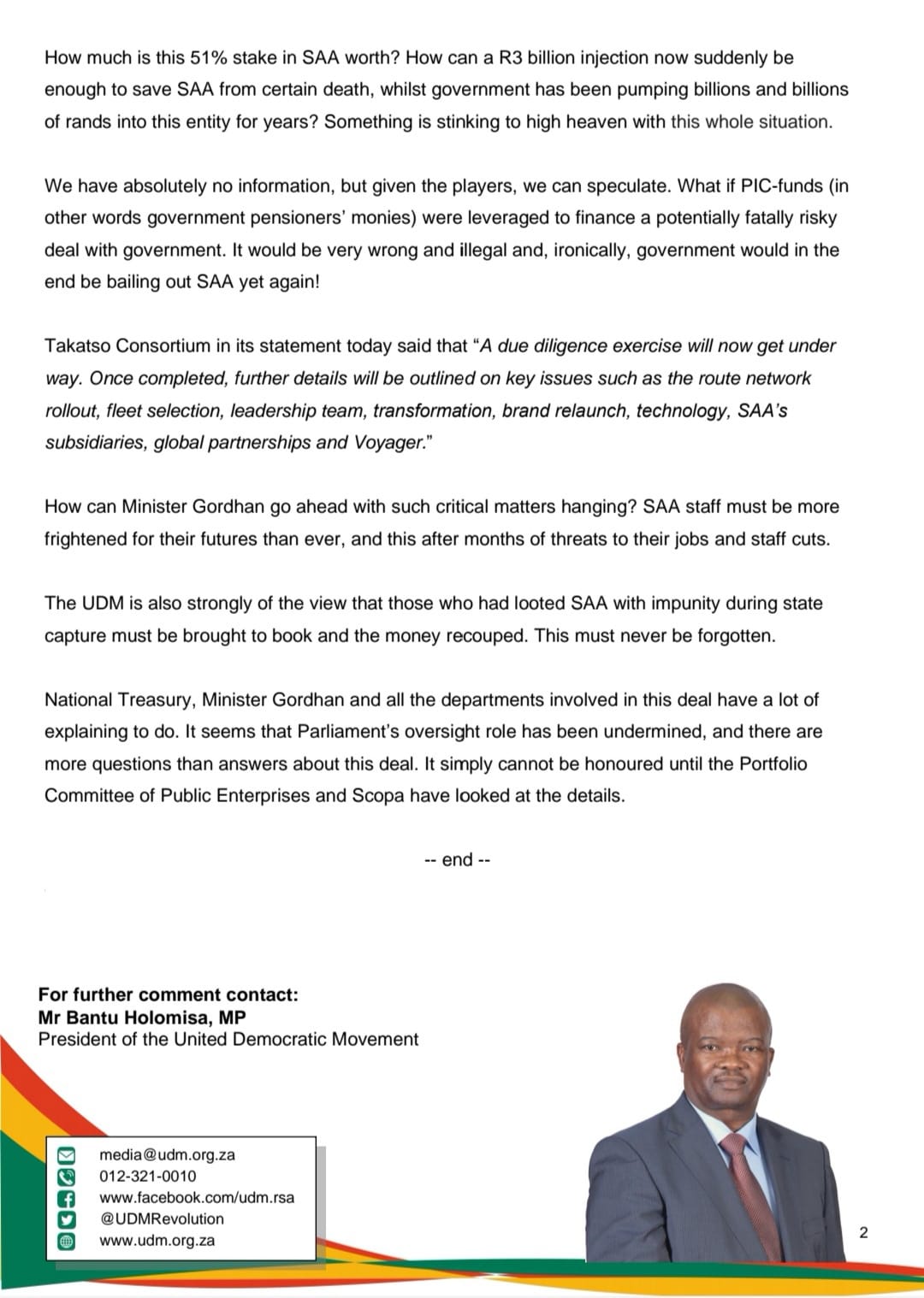 for "Takatso : Bantu Holomisa on Twitter: "Minister Gordhan sommer TELLS us 51% of #SAA is sold to, in part, # ..."